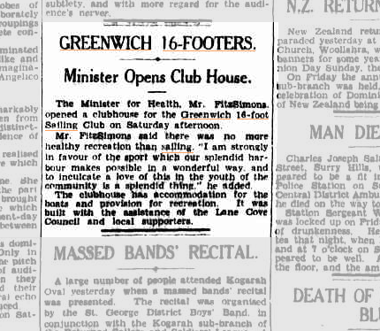 Greenwich Sailing Club has been sailing on Sydney Harbour since 1938. Below is the original article in the Sydney Morning Herald from Monday 26th September 1938 announcing the opening of the Greenwich 16-foot Sailing Club. The Club was renamed as Greenwich Sailing Club in later years.